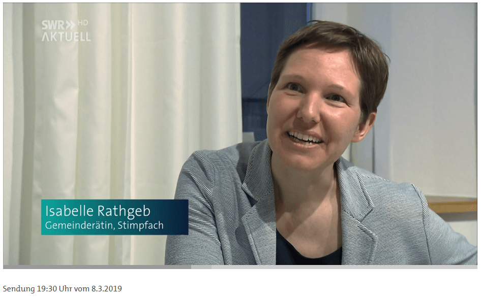 Anlässlich des Internationalen Frauentags am 8.3.2019 berichtete die SWR Landesschau über Isabell Rathgeb und ihr Engagement, mehr Frauen für die Kommunalwahl zur Kandidatur zu gewinnen.